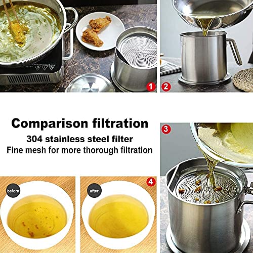 Aspen - Oil Strainer Pot Grease Can 1.4 L Stainless Steel Oil Storage Can Container with Fine Mesh Strainer Dust-Insect-Proof lid Non-Slip Plate Suitable for Storing Frying Oil and Cooking Grease Oil Jug