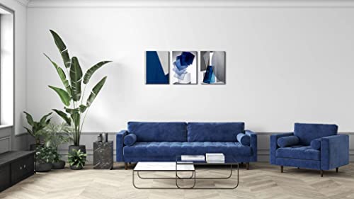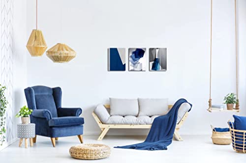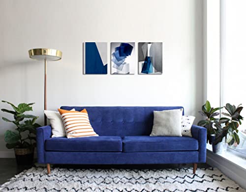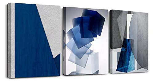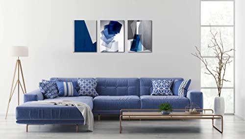 Oilpa Art - Blue Abstract Wall Art for Living Room Decor 12x16 Modern Blue White Grey Abstract 3D Geometric Canvas Panels Painting Picture Framed Artwork Office Bathroom Bedroom Home Decor 3 Pieces