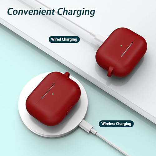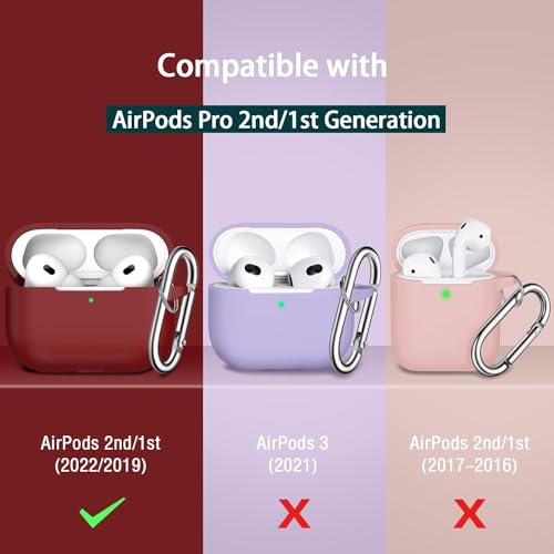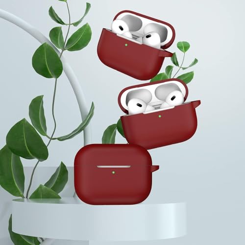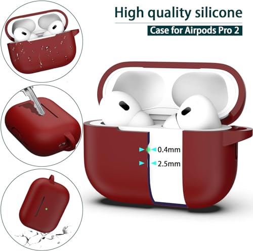 ojos - OJOS Case Compatible with AirPods Pro 2nd Generation Cover, Protective Silicone Skin Accessories with Keychain for Women Men for Apple AirPods Pro Gen 2 (2022), Wine Red