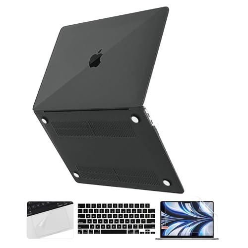 OJOS - OJOS Compatible with MacBook Air 13.6 Inch Case 2022 Release Model A2681 M2 Chip, Plastic Hard Shell Cover with Trackpad Film & Keyboard Cover & Screen Film for MacBook Air 13 M2, Matte Black