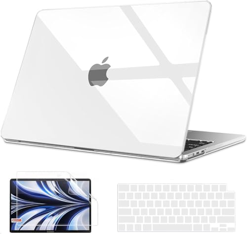 ojos - او جي او اس حافظة متوافقة مع ماك بوك اير 13.6 انش اصدار 2024 2023 2022 M3 A3113 M2 A2681 مع شاشة ليكويد ريتينا، حافظة بلاستيكية صلبة وغطاء كيبورد وواقي شاشة، شفاف كريستالي