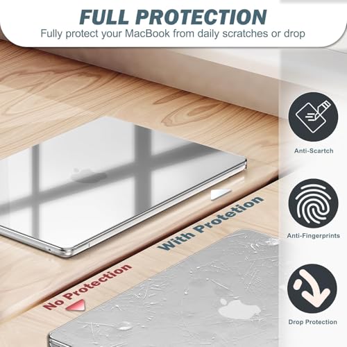 - 【ما تحصل عليه】- 1 جراب علوي شفاف، 1 غطاء سفلي شفاف، 1 غطاء كيبورد شفاف من البولي يوريثين الحراري و1 واقي شاشة.