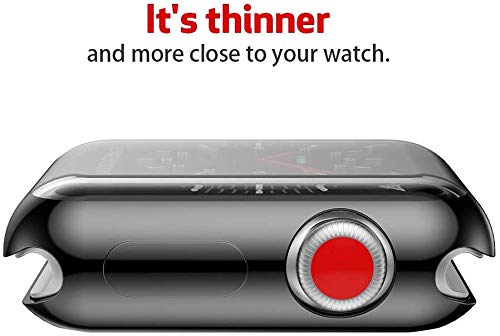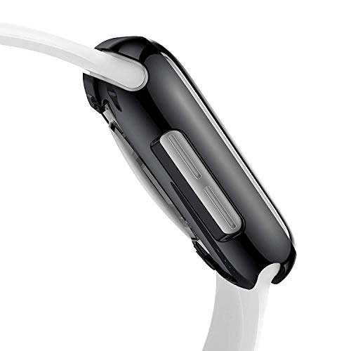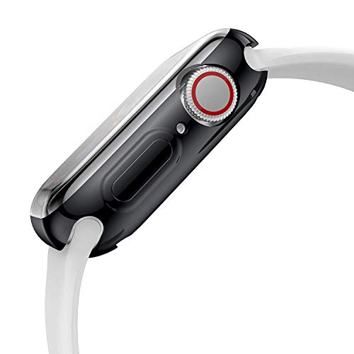 OJOS - OJOS Super Thin PC Electroplated Bumper Clear Screen Protector Full Cover Shiny Shell Shockproof Frame for Apple Watch Series 6 SE Series 5 Series 4 44MM (Black, 44 mm)