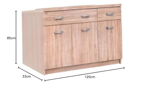 - الأبعاد: يبلغ عرض دولاب الأدراج 120 سم، وارتفاع 85 سم وعمق 33 سم. سوف تجد جميع المقاسات التفصيلية موضحة في الصور.