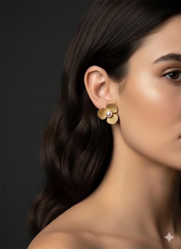 OKAN - اوكان اقراط فيونكة للنساء، مقاس M، لون ذهبي (ra263)