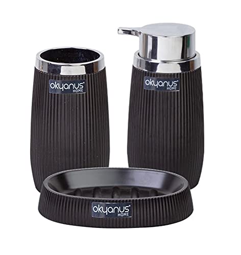 okyanus home - Okayanus home bathroom set, 3 pieces, round, striped, silver