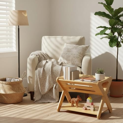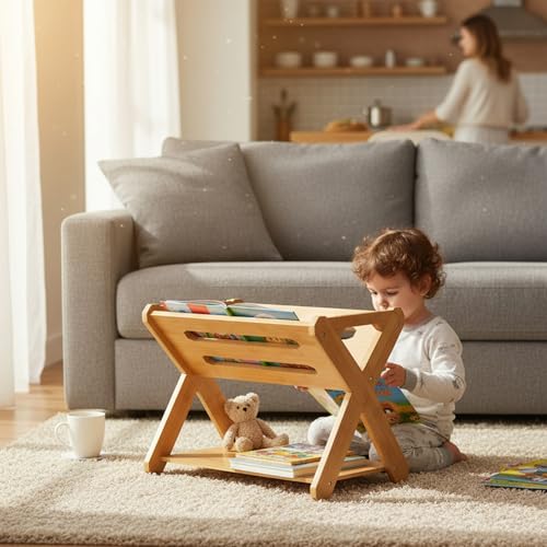 Okllen - اوكلاين حامل كتب للاطفال مع رف منظم تخزين الكتب من الخيزران للكتب الصغار غرفة النوم اللعب الحضانة متين يتضمن تعليمات التركيب خشب