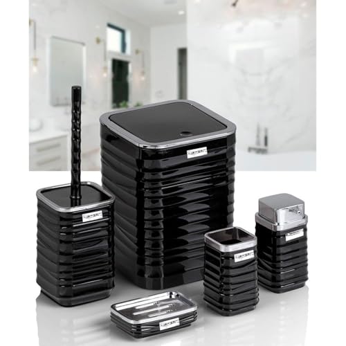 - (Versatile and Functional): The Luna Square 5 PCS Bathroom Set is not only stylish but also functional. The soap dish and soap dispenser are designed to hold a variety of soap bars and liquids, while the trash can and toilet brush holder provide convenient storage for these essential items. The toothbrush holder is also designed to hold multiple toothbrushes, making it a great choice for families or those who share a bathroom