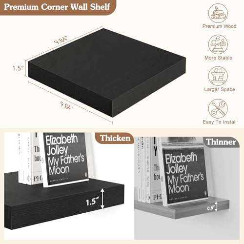 - 【Premium & Sturdy Wood Corner Shelves】Crafted from premium sturdy wood, these wooden corner shelves blend durability with timeless style. Each corner floating shelf supports up to 18 lbs—perfect for heavy books, potted plants, or decorative collections. Thicken and stronger brackets ensure these corner shelves wall mounted stay rock-solid for years. No wobbles, no sagging—just reliable, long-lasting storage that elevates your space.