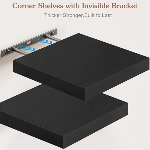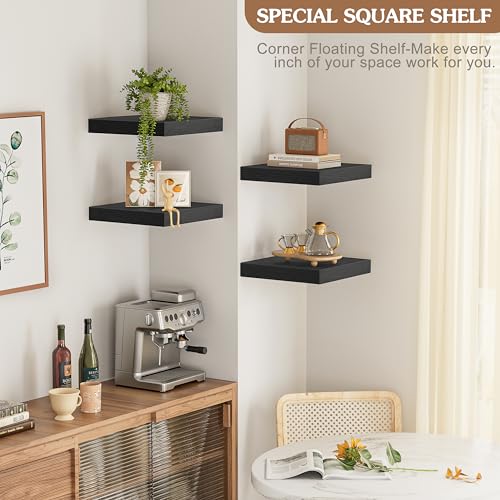 - 【Generous Size with Invisible Brackets】Get a set of 4 square floating corner shelves—each measures 9.84"(W) x 9.84"(D) x 1.5"(H), roomy enough for your go-to decor while staying sleek and space-smart. The hidden brackets let corner wall shelves float effortlessly, giving walls a clean, modern edge that blends seamlessly with any style. Our wall hanging corner shelves are perfect for showcasing your favorite items without cluttering your space—form meets function in one minimalist design.