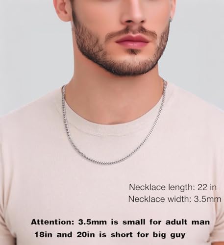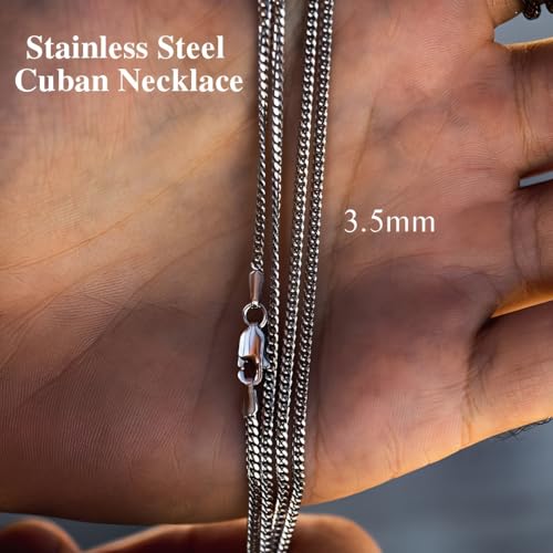 OLARCU - 3.5mm/5mm Silver Stainless Steel Cuban Link Chain Necklace Jewelry for Men, 18-26 Inches