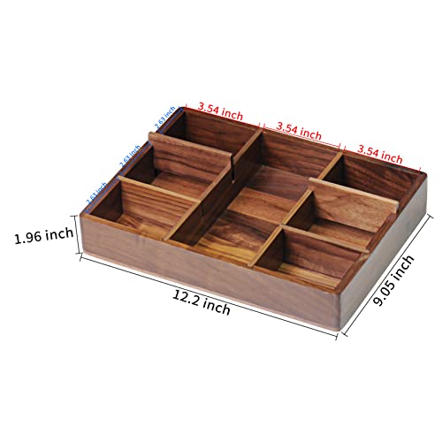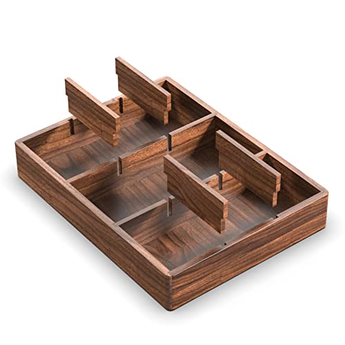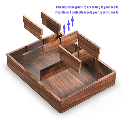 - ♥ Black Walnut Material -- OLETNY drawer organizer is made of high-quality North American black walnut, warm colors and delicate touch. Improve your quality of life. Black walnut has high density and strong stability, it is not easy to crack and deform when humidity changes, ensuring durability.