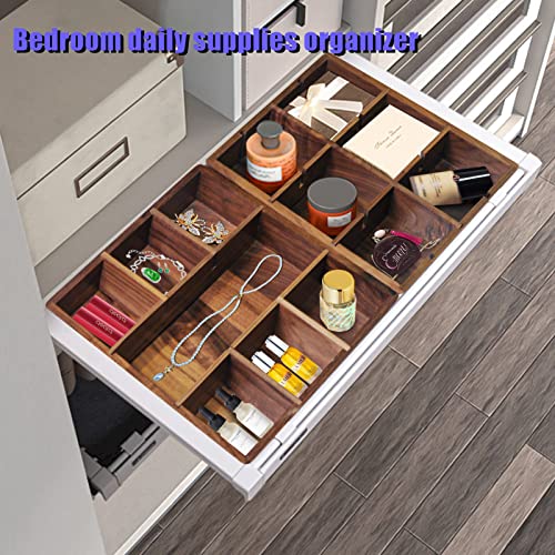 OLETNY - Drawer Organizer, Slots Black Walnut Drawer Dividers System, Jewelry Drawer storage rack, Adjustable Drawer Organizers Wooden Dividers for Cloakroom, Office Desk, Dressers, Makeup ((M)- 7