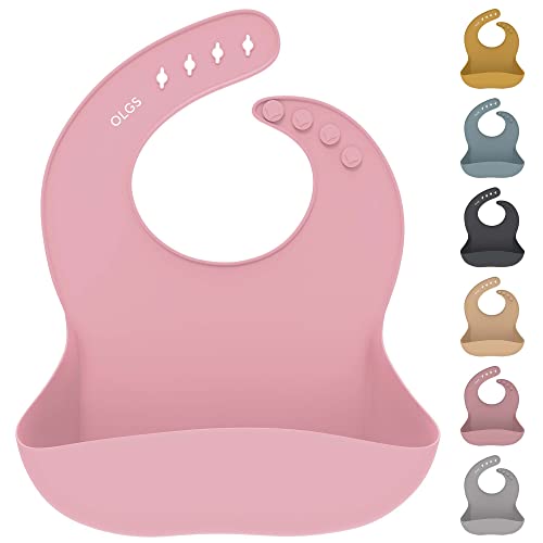 Olgs - Olgs Silicone Bib - Baby Bib with Crumb Tray - BPA Free & Waterproof - Washable - Rose - Unisex - Toddler