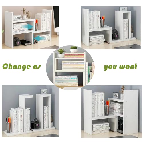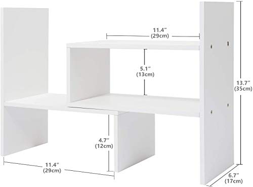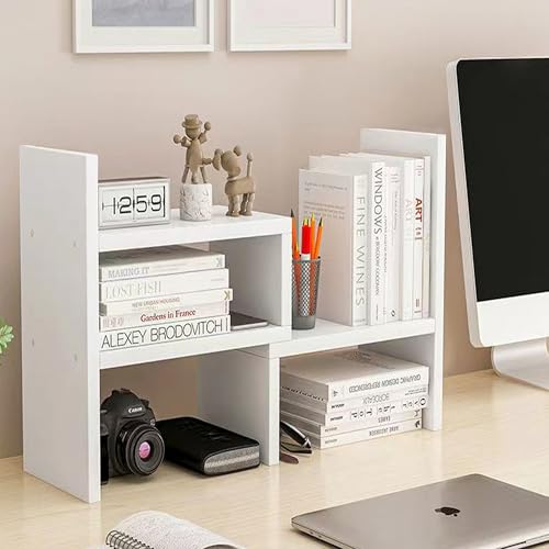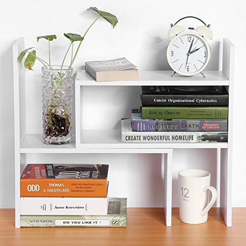 Olighan - خزانة كتب من الخشب الطبيعي من اوليجان، رف كتب على المكتب، رف كتب قابل للتوسيع في الغرفة، منظم سطح مكتب قابل للتوسيع، ارفف سطح مكتب قابلة للتعديل، منظم طاولة المطبخ، ابيض