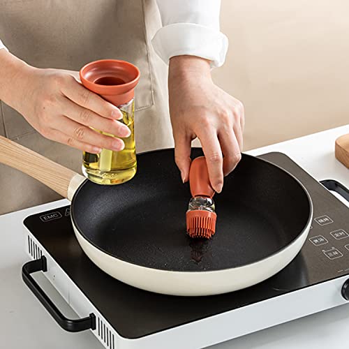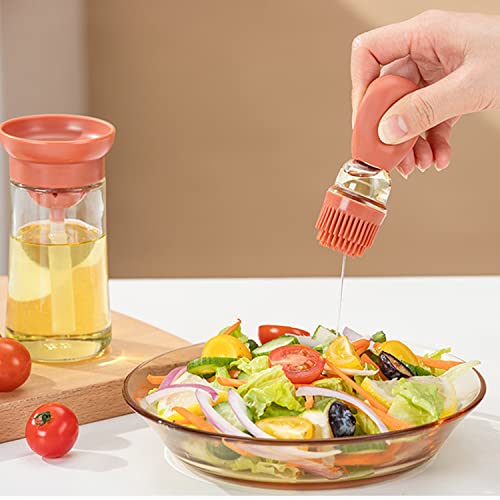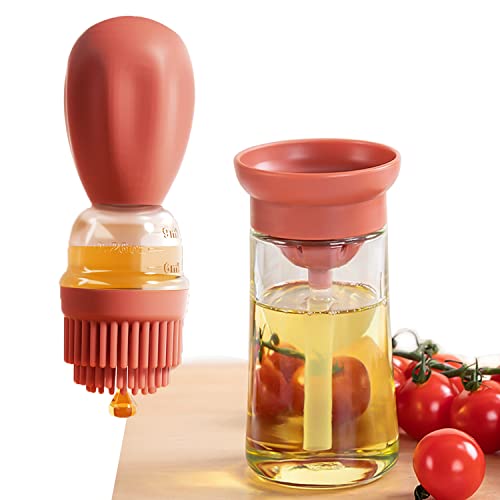 Bopie - زجاجة زيت الزيتون مع فرشاة سيليكون - علبة تخزين وموزع للزيت وقطارة من السيليكون بقياس للزيوت للمطبخ والتمارين الشواء والخبز والطهي ومقلاة الهواء