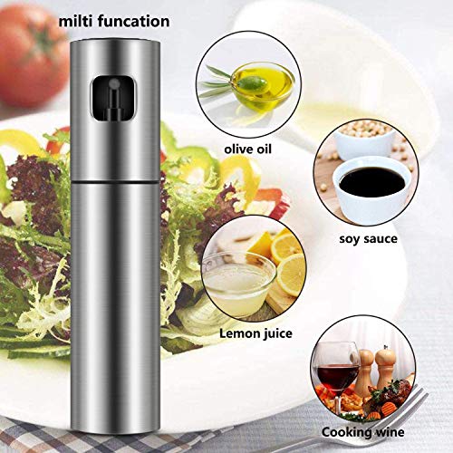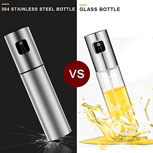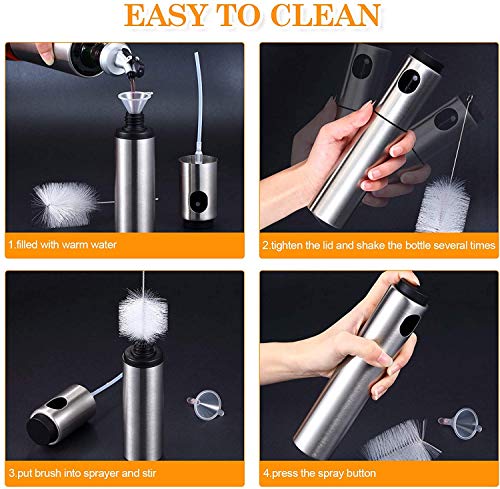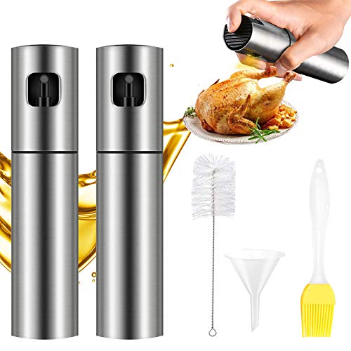 Bestine - Olive Oil Sprayer, Stainless Steel Oil Mister 100 ML Oil Dispenser Bottle with Oil Brush Funnel Scrub Brush for Salad BBQ Grill Air Fryer (2)