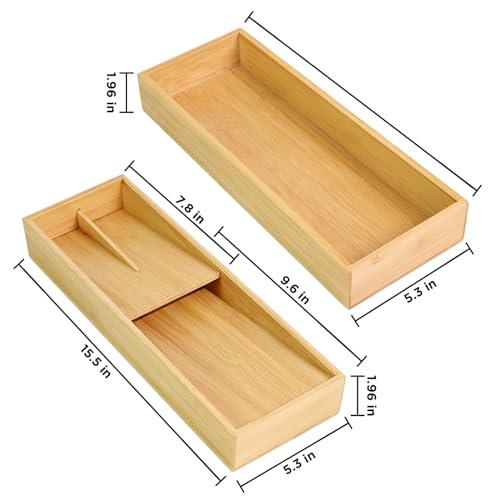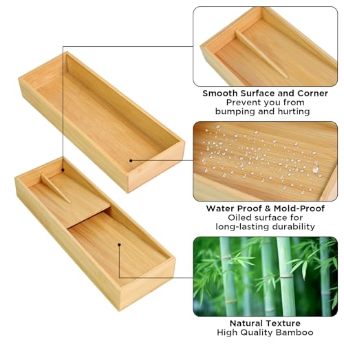 Ollieroo - Ollieroo Bamboo Silverware Drawer Organizer, Compact kitchen Drawer Organizer for Flatware, Utensil Holder for Spoons, Forks, Knives, Drawer Organization for Kitchen, Bathroom, Livingroom, Office, Set