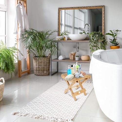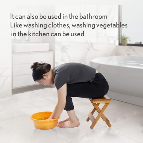 - موفر للمساحة - مقعد الاستحمام المصنوع من الخيزران هذا قابل للطي، لا يحتاج إلى تجميع، فقط افتحه ويمكنك استخدامه مباشرة. عندما لا تحتاج إلى استخدامها، يمكنك وضعها في زاوية صغيرة جيدة التهوية، والتي يمكن أن توفر المساحة بشكل فعال.