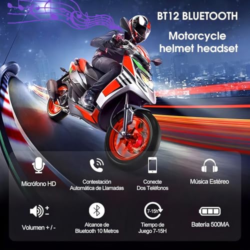 OLUKORO - Bluetooth Headset for Motorcycle Helmet with Microphone, Bluetooth 5.0 Waterproof Sports Headset for Helmet [Two Devices Can Be Connected at the Same Time]