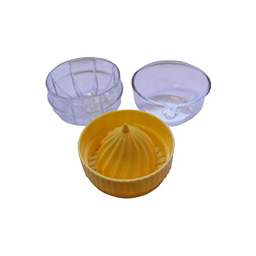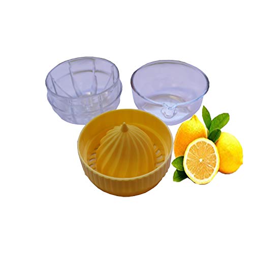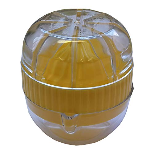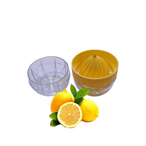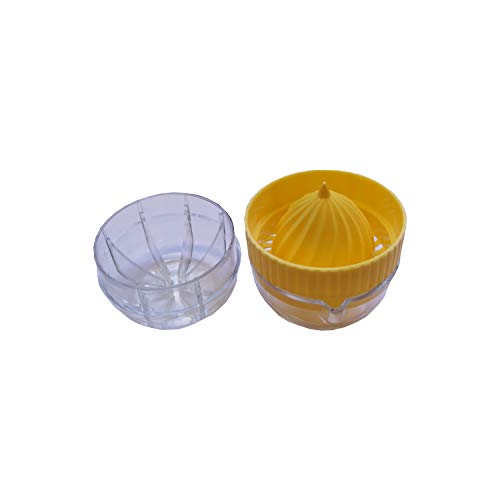 - Not dishwasher safe. Box contents: 1 x small citrus juicer with container and lid. Dimensions: 7 x 7 x 8 cm. Material: exterior: polystyrene. Interior: polypropylene. Colour: yellow.