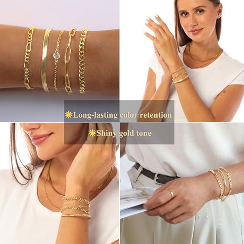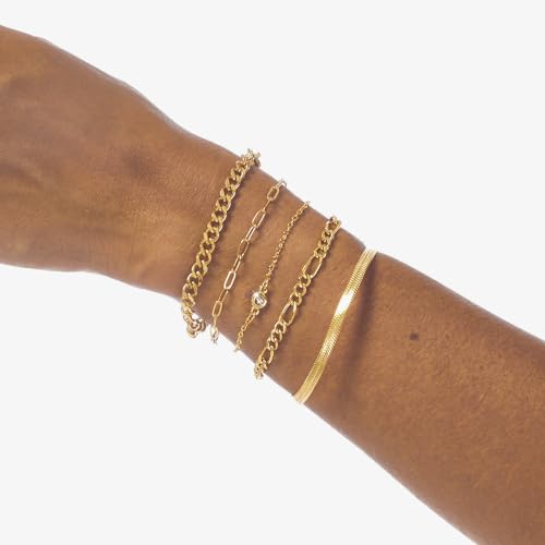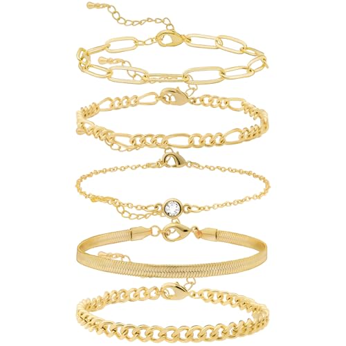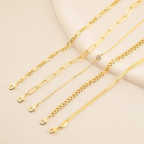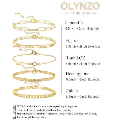OLYNZO - إسورة من أولينزو للنساء، معدن مطلي بالذهب عيار 14، بلون ذهبي وتصميم مختلط تشين، مقاس 16.5 سم