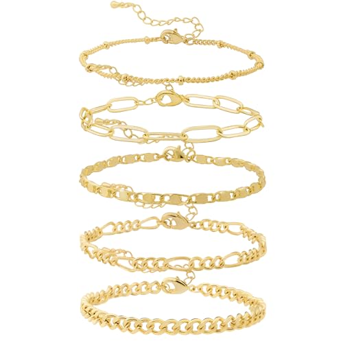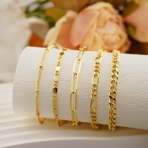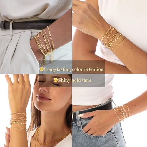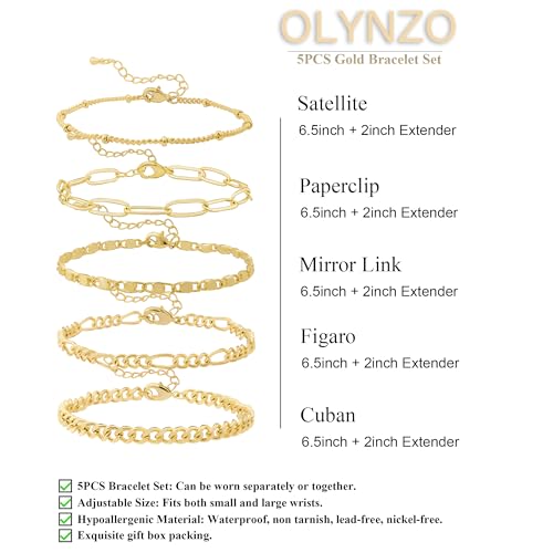 OLYNZO - Gold Bracelets for Women Trendy Jewelry 14k Real Gold Plated Dainty Bracelet Stack Set Cute Adjustable Paperclip Cuban Link Hand Chain Bracelets for Women Gifts For Friends Female