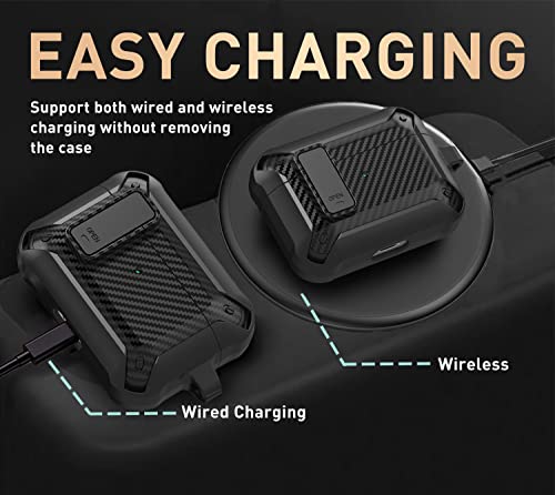 - 【سهل الاستخدام ومريحة لوقت الشحن】: يتميز زر "فتح" بنقرة واحدة بأنه يحافظ على جراب حماية سماعات ايربودز برو مغلقة دائمًا. لا داعي للقلق من فقدان ايربودز برو ابل. فتحات دقيقة تدعم الشحن السلكي/اللاسلكي دون إزالة الغطاء.