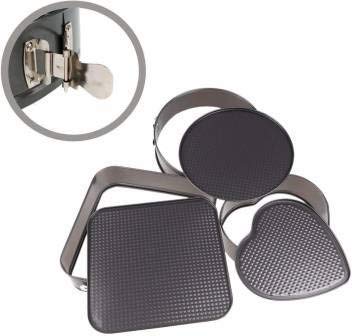 OM CREATION - مجموعة قوالب كيك من او ام.انتربرايز مطلية بالتفلون غير لاصقة مكونة 3 قطع - على شكل مربع وقلب ودائرة مع قاعدة فضفاضة - سهلة الغسيل - للاستخدام في الفرن أسود . الألومنيوم