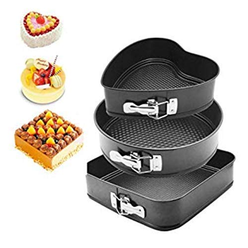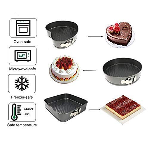 - 1.تتميز صينية سبرينج فورم بطلاء مانع للالتصاق بقاعدة قابلة للفصل حتى تتمكن من نقل وتزيين وتقديم تحفة الخبز الخاصة بك بسهولة. تتضمن المجموعة المكونة من 3 صواني 3 أشكال مختلفة لتعدد الاستخدامات.