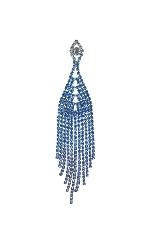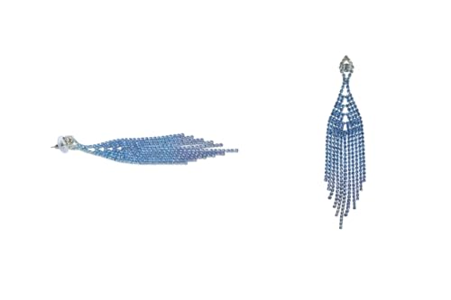 Generic - اقراط متدلية مزينة بشراشيب مرصعة باحجار الراين المتدرجة للنساء - ازرق