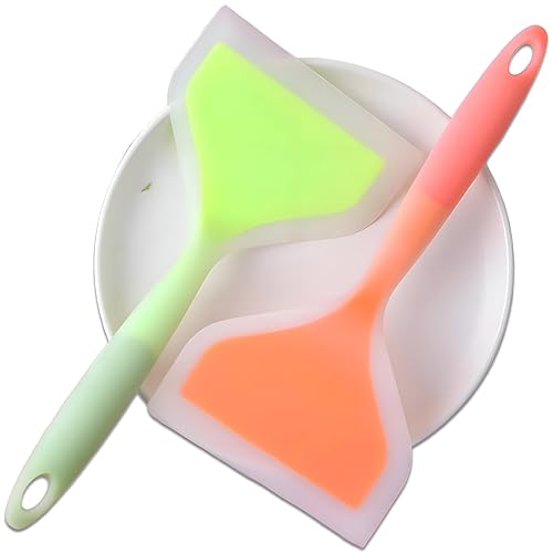 Generic - ملعقة سباتولا لعجة البيض - لقلب الأومليت الهش والكريب والبان كيك وغيرها؛ مصنوعة من السيليكون المقاوم للحرارة لتحمل درجات حرارة الطهي العالية بسهولة (2 قطعة من الألوان المعروضة).