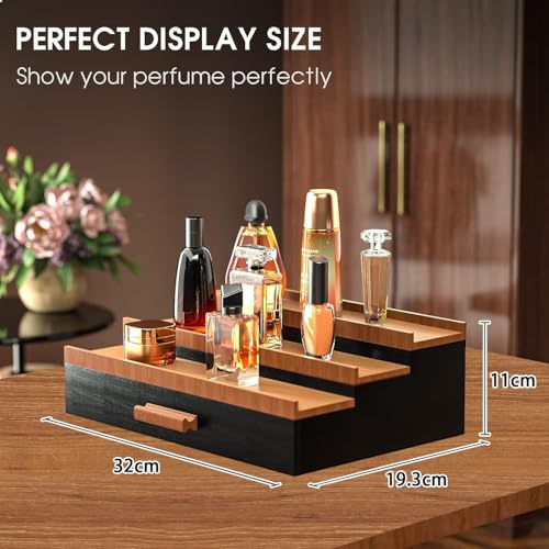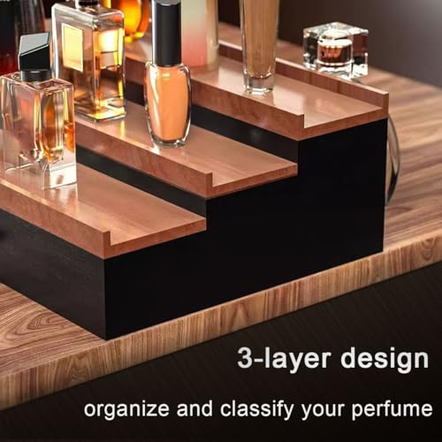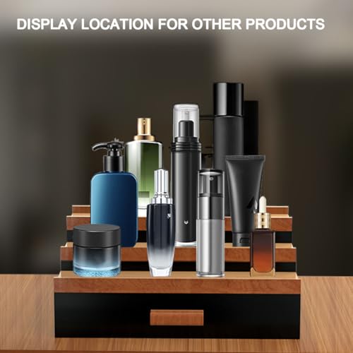 Omiention - منظم كولونيا خشبي للرجال من اومينشن، 3 طبقات من عرض الكولونيا مع درج تخزين وعرض منظم العطور، هدية رائعة للرجال (خشب الجوز الأسود)