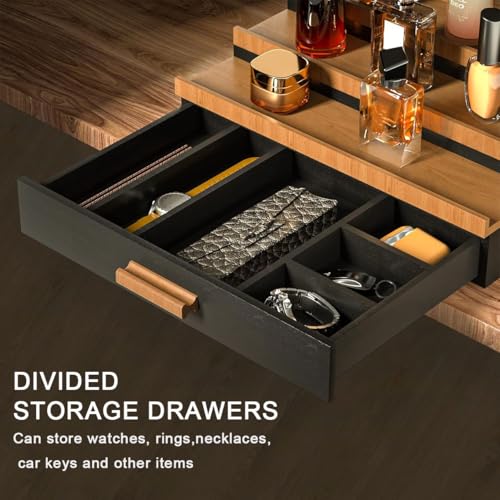 - درج تخزين عملي - مجهز بأدراج عملية، يمكن استخدامه لتخزين العناصر المقارنة مثل الساعات والخواتم والقلائد ومفاتيح السيارة وما إلى ذلك، مما يجعل طاولة الزينة الخاصة بك أكثر ترتيبًا وتنظيمًا.