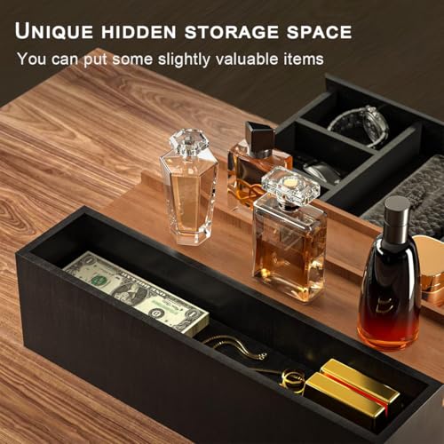 - مساحة تخزين مخفية فريدة - مساحة التخزين المخفية المصممة خصيصًا مصنوعة من نفس مادة صندوق التخزين. إنها متينة وجميلة، ويمكنها تخزين الأشياء الثمينة بأمان مثل المجوهرات الذهبية والفضية لزيادة السلامة.
