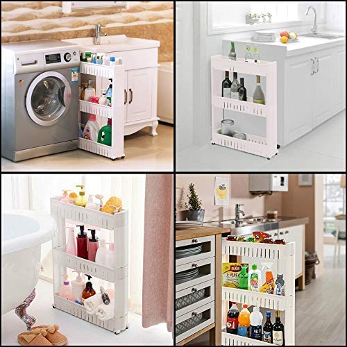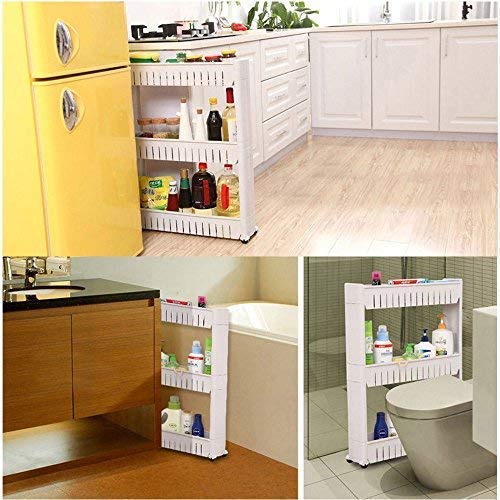 OMKAR - رف تخزين منظم من اومكار، من البلاستيك بتصميم جوانب رفيعة وعجلات وموفر للمساحة، للمطبخ والحمام وغرفة النوم، متعدد الالوان، عربة بعجلات للمطبخ، (3 رفوف)