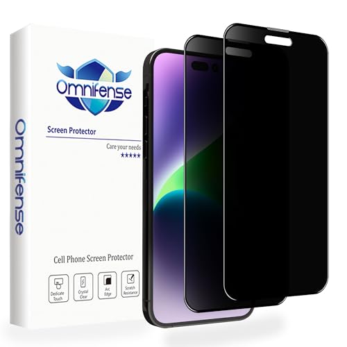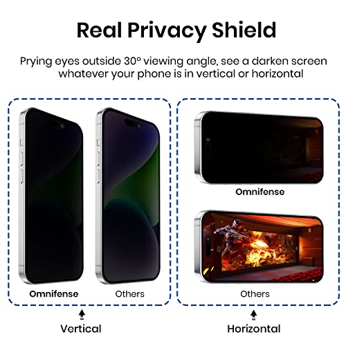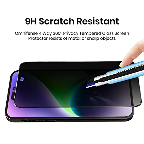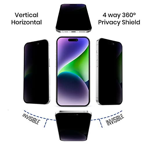 Omnifense - شاشة حماية من الزجاج المقوى للخصوصية بزاوية 360 درجة في 4 اتجاهات توفر حماية مضادة للتجسس أفقيًا وعموديًا لموبايل آيفون 14 بلس من اومني فنس [عبوة من قطعتين]