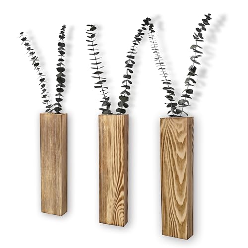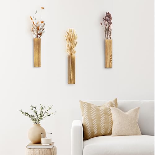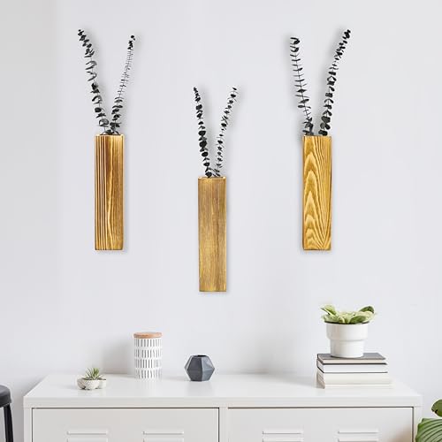 Omytie - 3 Pack Natural Wood Wall Planter Vase, Wall Hanging Flower Pot, Indoor Plants Holder for Dried Flowers and Artificial Greenery, for Livingroom Bedroom Kitchen Entry Home Office Decoration