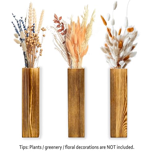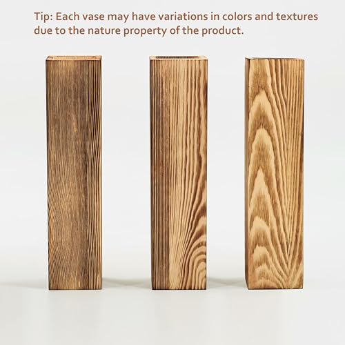 - [Materials & Dimension]: Height - 11.8 inches, Length - 2.8 inches, Depth - 1.6 inches. Made of high quality sustainably sourced natural pine wood with handcrafted cabonized finish. Due to the nature property of the product, each vase may have variations in colors and textures, and it may have small knots or scratches.