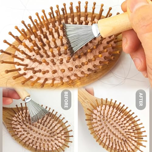 - Premium Material: The hair brush cleaner tool is made of plastic material, which are durable and eco-friendly, also are sturdy and natural wood handle, can be used for long time.