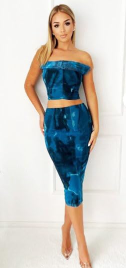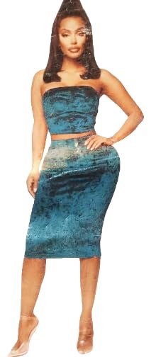 generic - لانجرى قطيفة جيبه وتوب تركواز, One Size طقم لانجيري حريمي قطيفه ليكرا - قطعتين Sexy velvet Women's Lingerie Nightwear - 2 Pcs