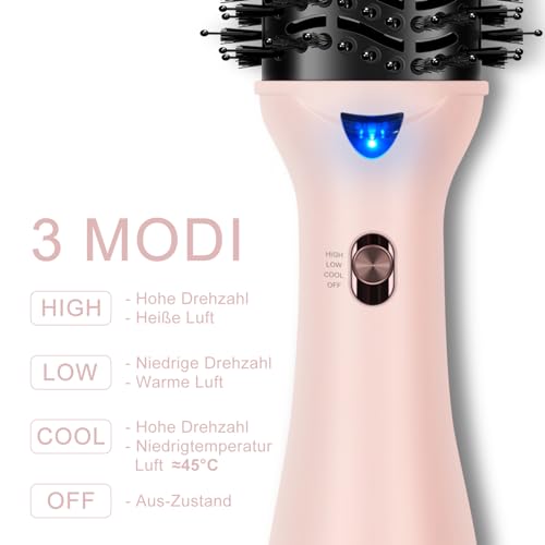 - One-step hot air brush: combination of powerful hair dryer and volume brush. 4-in-1 multifunctional hair dryer brush, warm air brush, easy and quick drying, give volume, straighten, style with the styling brush, for all-round professional styling in half the time. Please note: the brush head and handle are made from one piece and therefore cannot be rotated or removed.