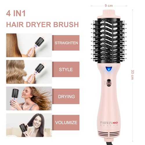 PARWIN PRO BEAUTY - One-Step Hot Air Brush, PARWIN PRO BEAUTY Round Brush Blow Dryer, 4-in-1 Oval Hair Dryer Curling Brush, Ion Hair Dryer Brush, Round Brush for Drying, Straightening and Volume, 1000 Watt (Pink)