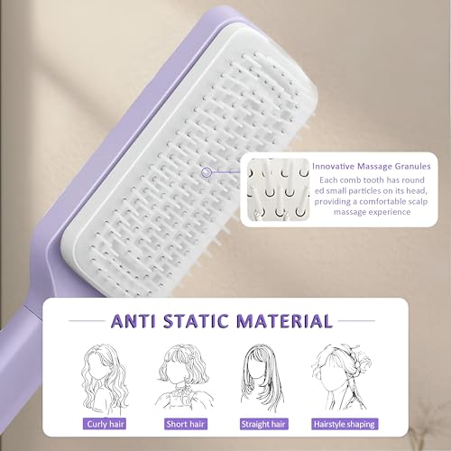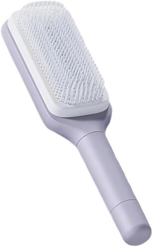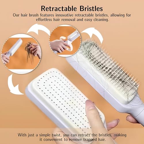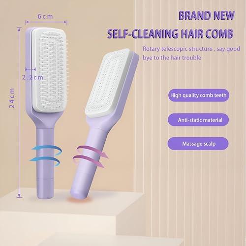 Generic - One-Touch Cleaning Brush - Soft anti-static hair brush with rotating cleaner and 3D cushioned comb, ideal for all hair lengths