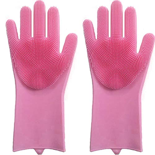 generic - one year warranty_Dishwashing Gloves Silicone Pink Houseworking Fruit Brush Kitchen Glove