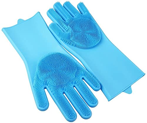 generic - one year warranty_Heat Resistant Non-slip Waterproof Durable Silicone Dishwashing Gloves blue color775
