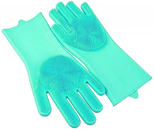 generic - one year warranty_Light Green Heat Resistant Non-slip Waterproof Durable Silicone Dishwashing Gloves for Fruit and Vegetable Cleaning349