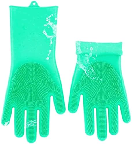 generic - one year warranty_Magic Silicone Gloves with Wash Scrubber, Dishwashing Cleaning Gloves with Bristles 240 g - Turquoise