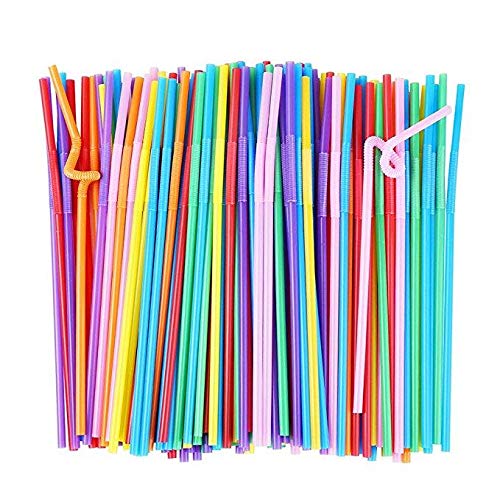 Spaceshoop - شفاطة شرب ملونة طويلة ومرنة للاستعمال مرة واحدة في الحفلات والبار والمشروبات وعصائر السموذي، ومفيدة للفنون والحرف اليدوية، عبوة من 100 شفاطة