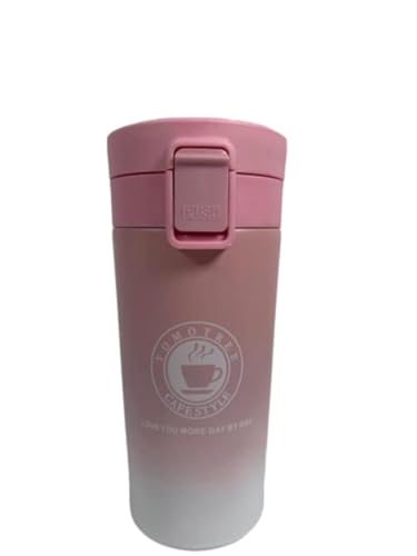 Generic - مج سفر حراري محمول من الستانلس ستيل بتصميم جدار مزدوج يحافظ على درجة الحرارة والبرودة لمدة 6 ساعات، ثيرموس للسفر - 380 مل - بينك/ابيض، ضمان لمدة عام واحد